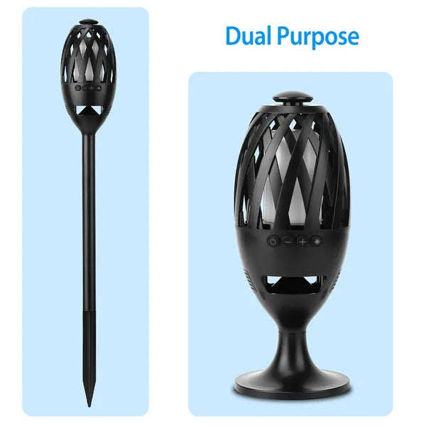 Altavoces de llama LED Antorcha Altavoz inalámbrico Altavoz de graves estéreo a prueba de agua Altavoz iluminado para exteriores Atmósfera Parpadeo LED Luz nocturna Luces de estaca para patio Linterna para fiesta Acampar