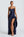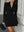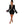 Vestido negro cruzado a la cadera con cuello cuadrado y guantes