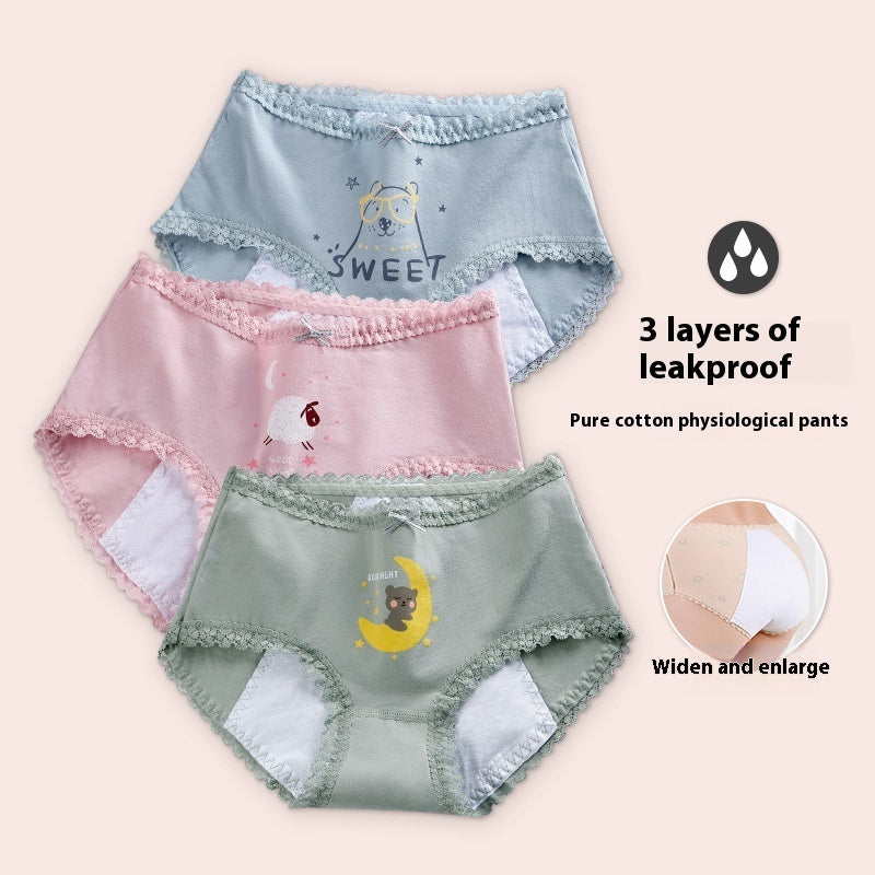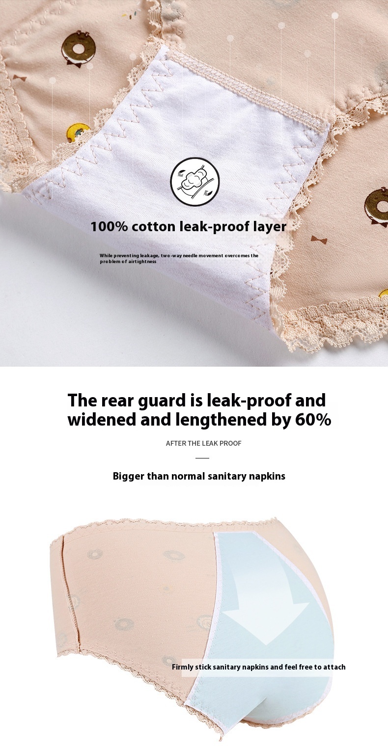 PANTIES ADOLESCENTE DE ALGODÓN, ROPA INTERIOR ESTAMPADA DE CINTURA MEDIA PARA LA PREVENCIÓN DE FUGAS LATERALES DEL PERÍODO MENSTRUAL SALE ENDS IN