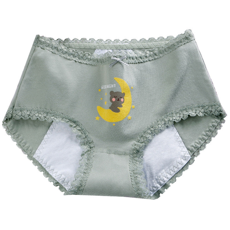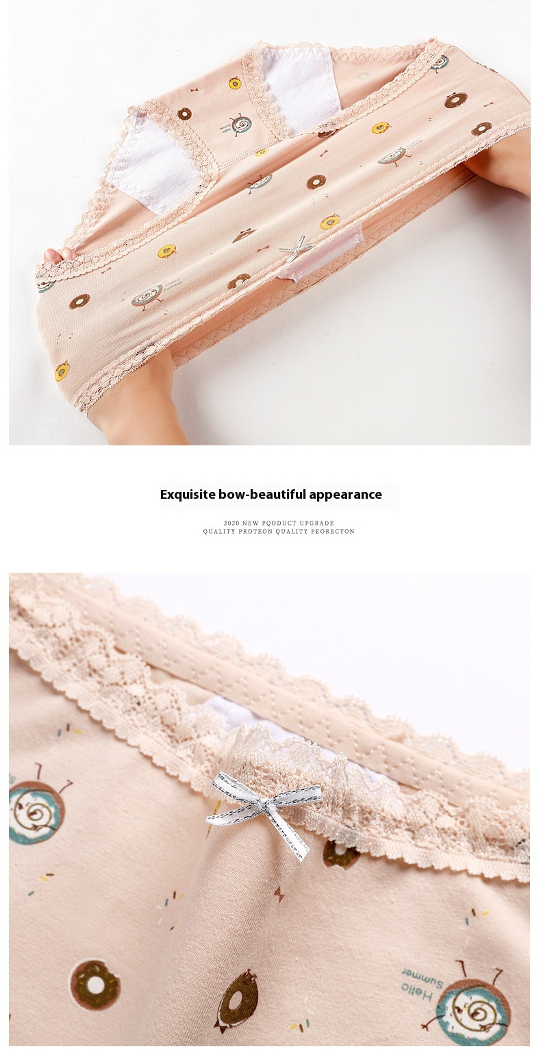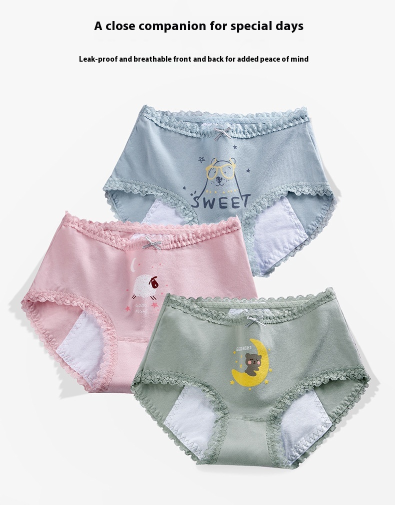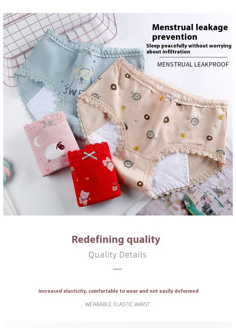 Panties adolescente de algodón, ropa interior estampada de cintura media para la prevención de fugas laterales del período menstrual