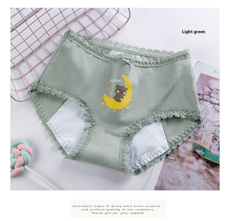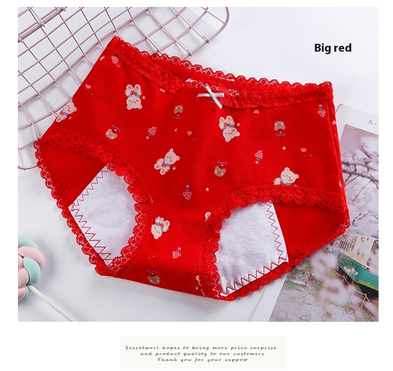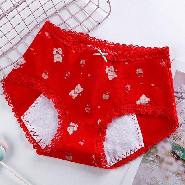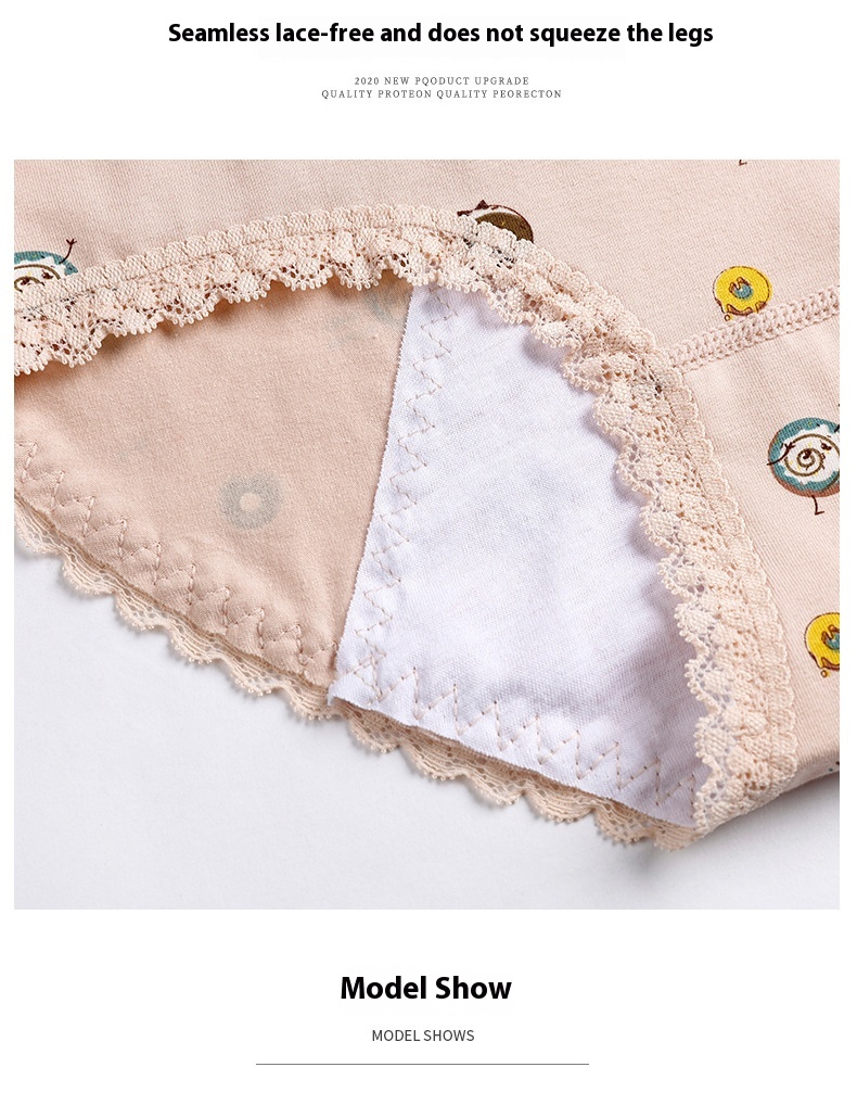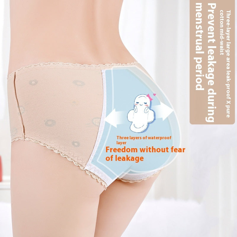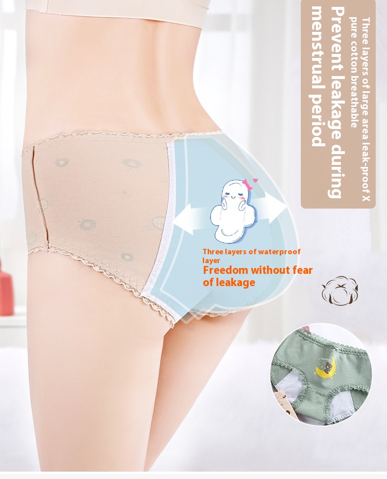 Panties adolescente de algodón, ropa interior estampada de cintura media para la prevención de fugas laterales del período menstrual