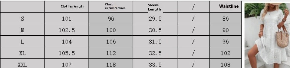 Vestido casual de cintura con mangas con volantes y cuello redondo de manga corta con bordado hueco para mujer