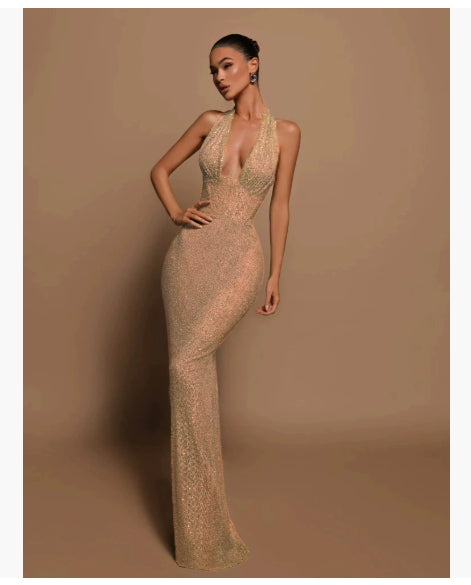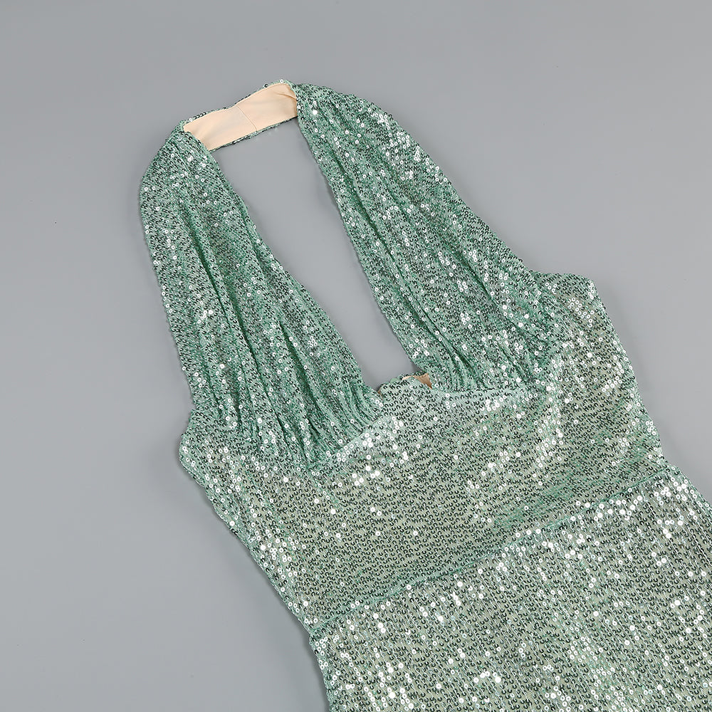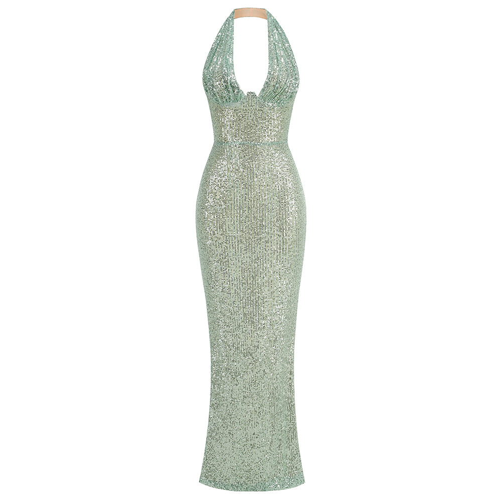Vestido de noche con bola adelgazante y lentejuelas brillantes divididas
